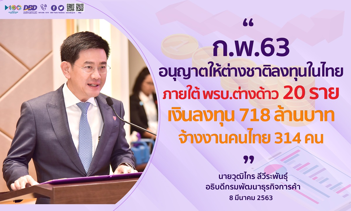 สถิติต่างชาติลงทุนในไทยเดือนกุมภาพันธ์ 2563