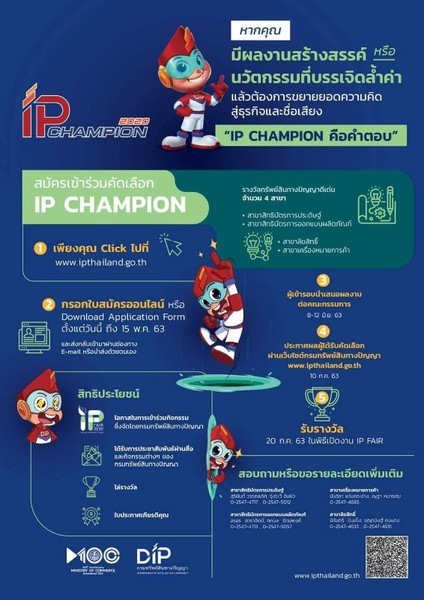 ชวนส่งผลงานทรัพย์สินทางปัญญาเข้าประกวด IP CHAMPION 2020