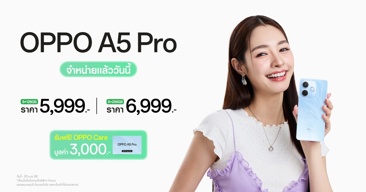 Onlinenewstime.com : OPPO ประกาศวางจำหน่าย “OPPO A5 Pro…