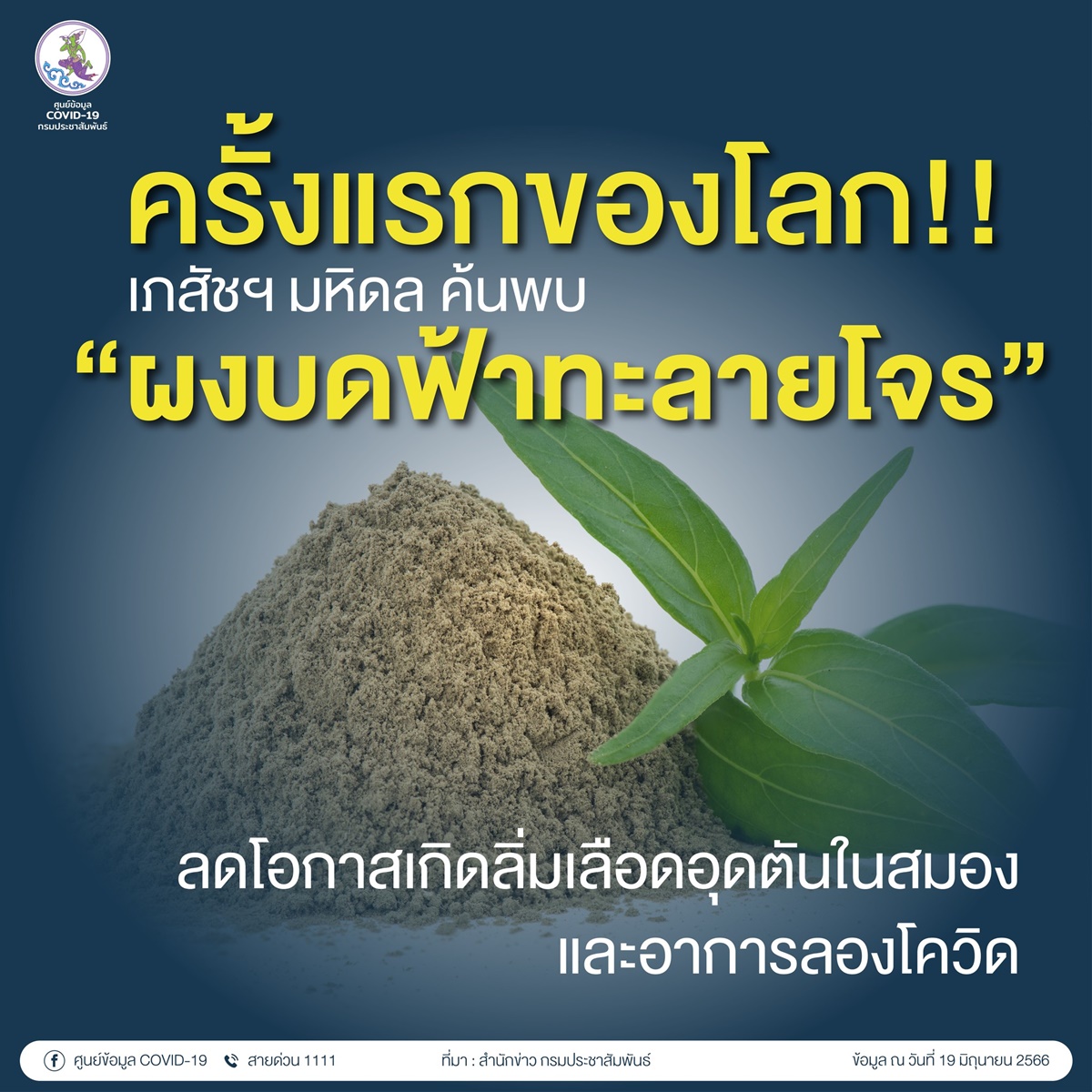 ซึ่งถือเป็นการค้นพบครั้งแรกของโลกถึงฤทธิ์ฟ้าทะลายโจร ในการช่วยลดโอกาสการเสียชีวิตจากการเกิดลิ่มเลือดอุดตันและความทุกข์ทรมานจากลองโควิด ซึ่งต้องอาศัยการศึกษาวิจัยเพิ่มเติมอีกในอนาคต